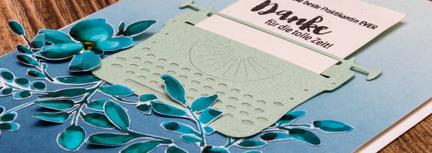 Letzte Woche verabschiedeten wir im Büro unsere Praktikantin. Für diesen Anlass habe ich eine Abschiedskarte kreiert. Die Inspiration für die Schreibmaschinen-Karte stammt von Reni, deren Karten-Blog einen Besuch absolut wert ist. Auf meiner Karte wollte ich eine interaktive Version der Schreibmaschine einfügen, in der sich das Blatt Papier mit der Botschaft bewegt. Die Idee war… Weiterlesen Abschiedskarte Praktikantin